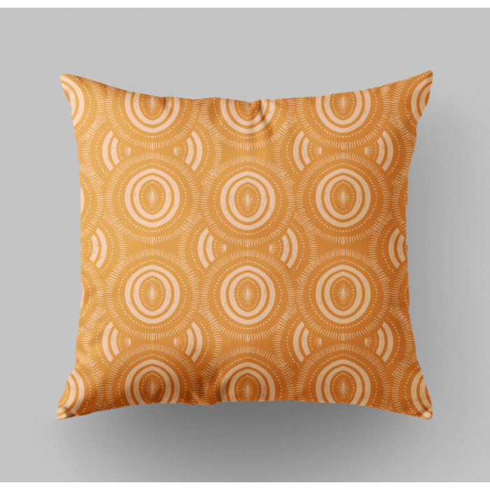 *Design: Double-sided print featuring a retro-inspired geometric mandala design paired with minimalist triangle patterns in earthy tones. Comes with an invisible zipper that closes and opens smoothly for a seamless look.