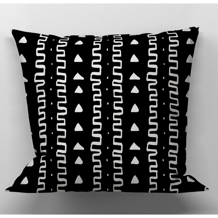 *Design: Double-sided print with bold black and white tribal-inspired geometric patterns. Comes with an invisible zipper that closes and opens smoothly for a neat, stylish look.