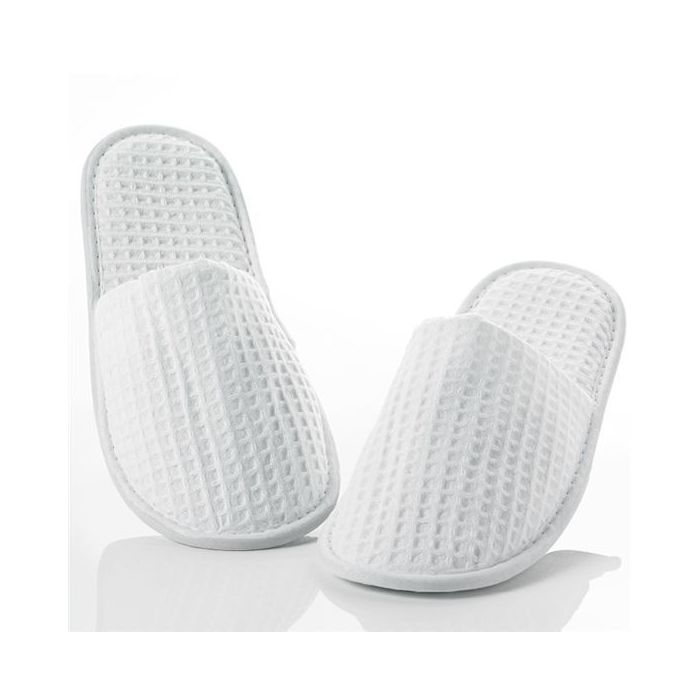 Elevate the feeling of luxury and cleanliness with our Premium Waffle Weave Closed-Toe Slippers. Crafted from high-quality, lightweight terry cotton fabric with a signature diamond waffle texture, these slippers offer the perfect balance of breathability and coverage.